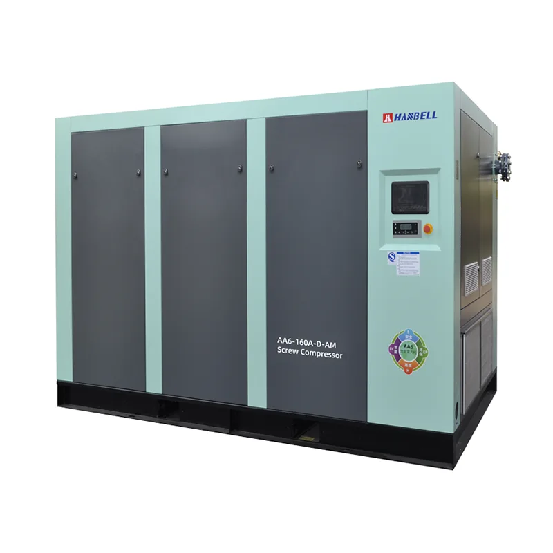 The Hanbell tTwo stage Compression Variable Frequency Screw Air Compressor model adopts the side-in-top-out (top-out) design of the centrifugal fan. It has stable air pressure, an efficient suction design, uniform heat exchange, high efficiency of ring temperature heat exchange, and better oil injection temperature and efficiency of the main unit. The low-speed large-capacity centrifugal fan design is energy-saving and low-noise.